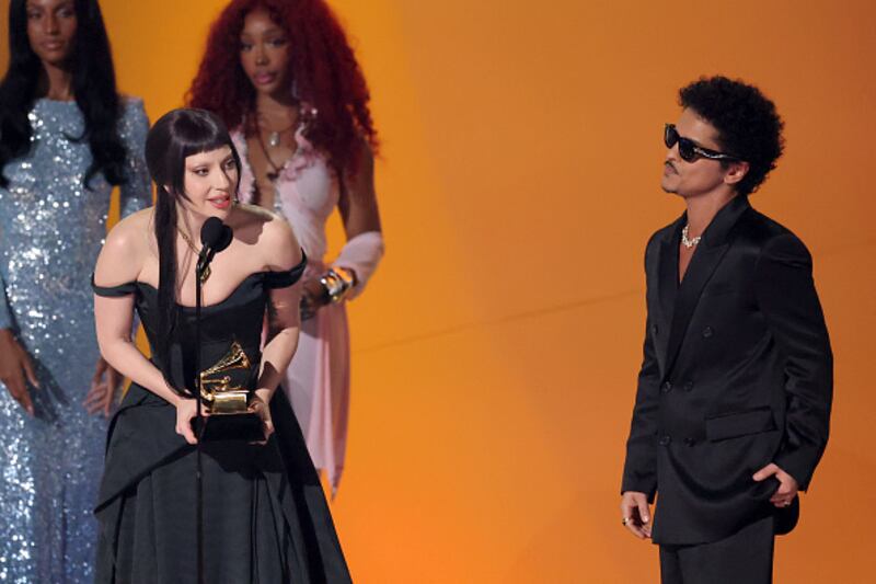 67th GRAMMY Awards - Show LOS ANGELES, CALIFORNIA - FEBRUARY 02: (FOR EDITORIAL USE ONLY) (L-R) Lady Gaga and Bruno Mars accept the Best Pop Duo/Group Performance award for “Die With A Smile” from SZA onstage during the 67th GRAMMY Awards at Crypto.com Arena on February 02, 2025 in Los Angeles, California. (Photo by Amy Sussman/Getty Images) (Amy Sussman/Getty Images)
