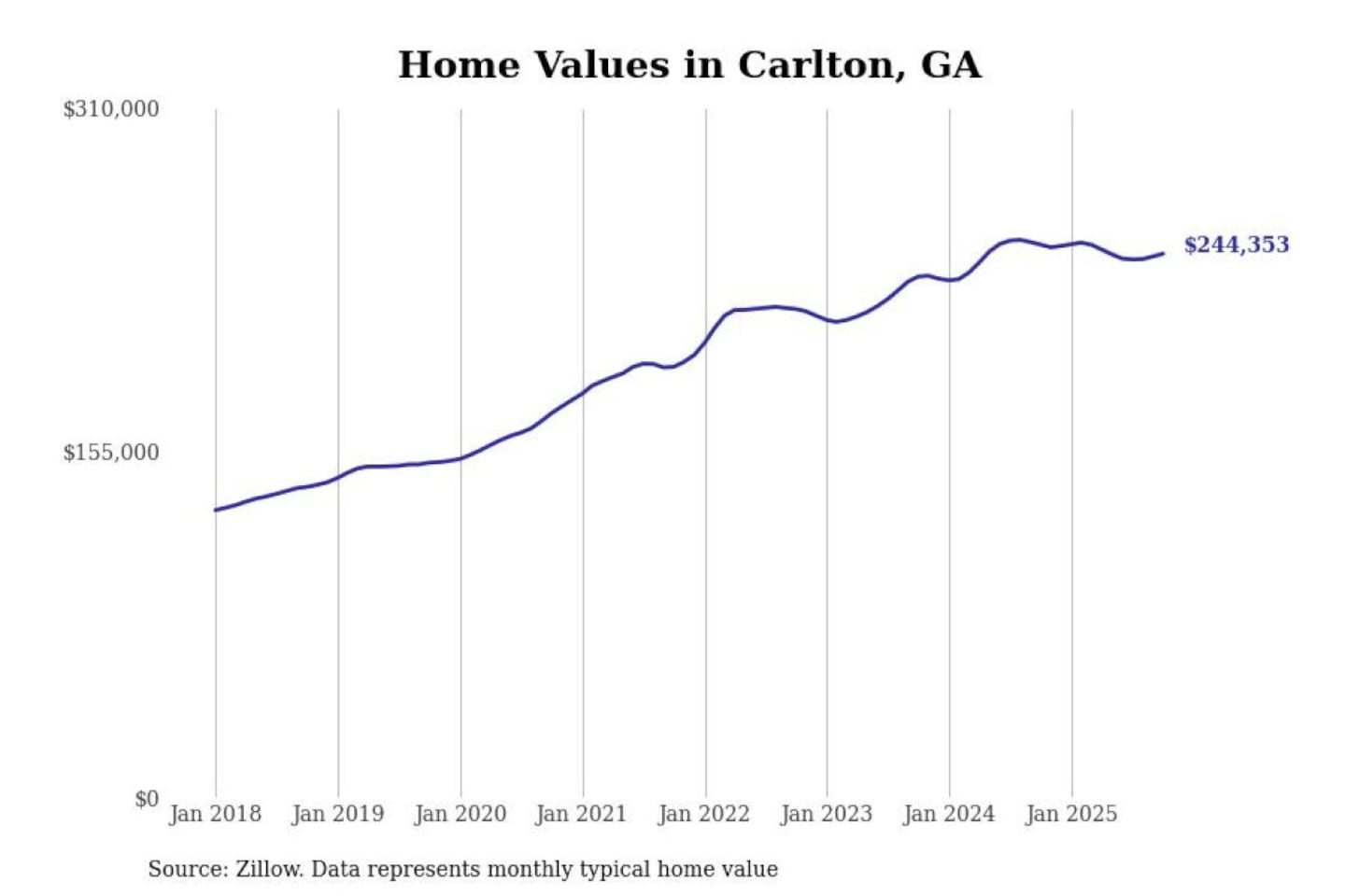 Stacker compiled a list of cities with the most expensive homes in the Athens-Clarke County, GA metro area using data from Zillow. Charts show the monthly typical home value since January 2018.