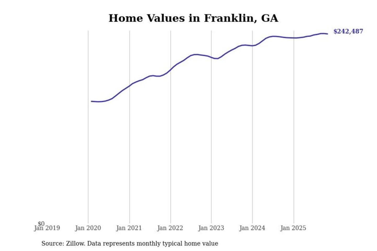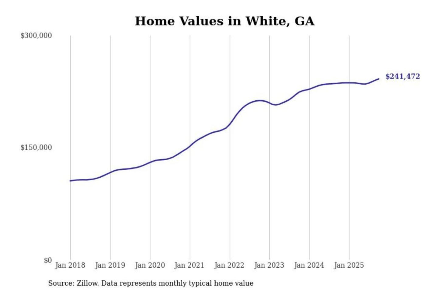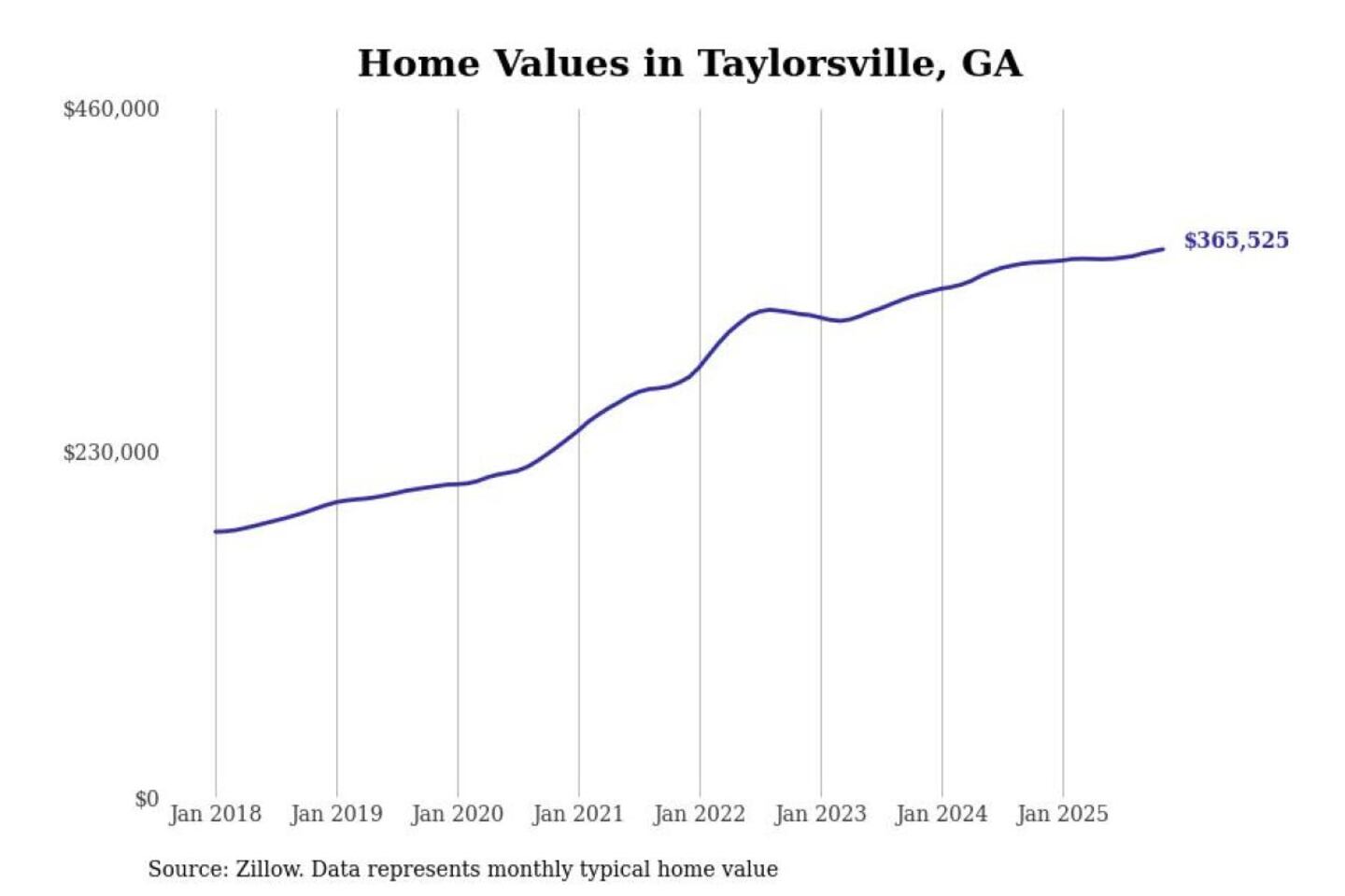Stacker compiled a list of cities with the most expensive homes in the Atlanta-Sandy Springs-Alpharetta, GA metro area using data from Zillow. Charts show the monthly typical home value since January 2018.