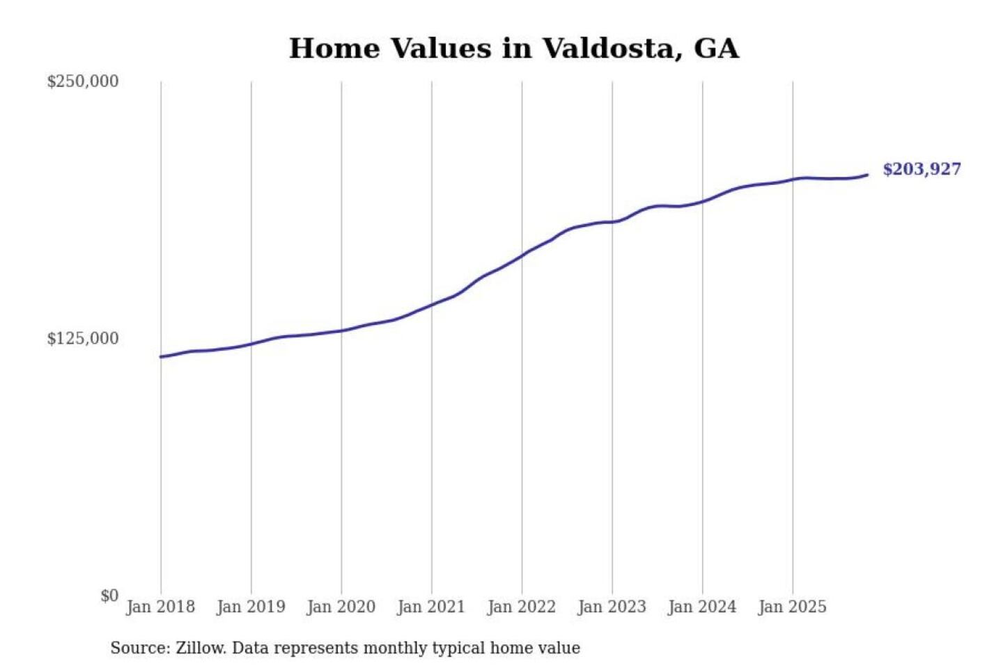Stacker compiled a list of cities with the most expensive homes in the Valdosta, GA metro area using data from Zillow. Charts show the monthly typical home value since January 2018.