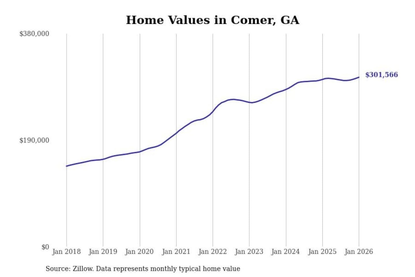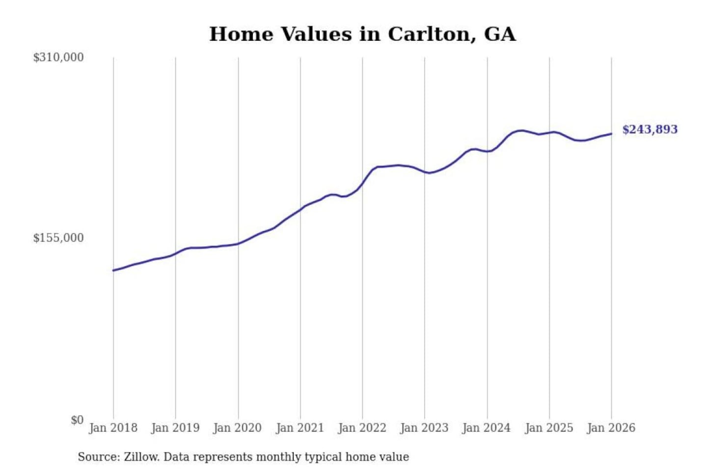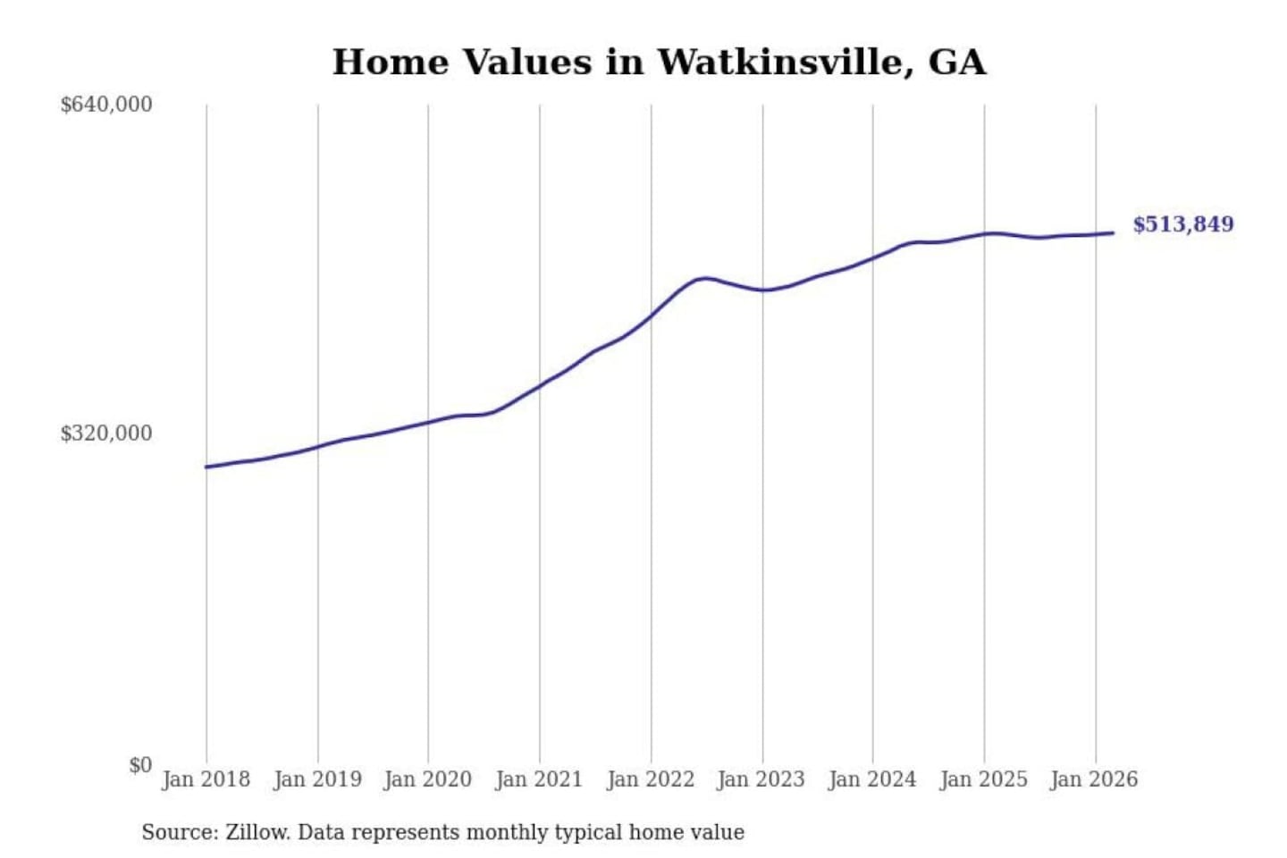 Stacker compiled a list of cities with the most expensive homes in the Athens-Clarke County, GA metro area using data from Zillow. Charts show the monthly typical home value since January 2018.