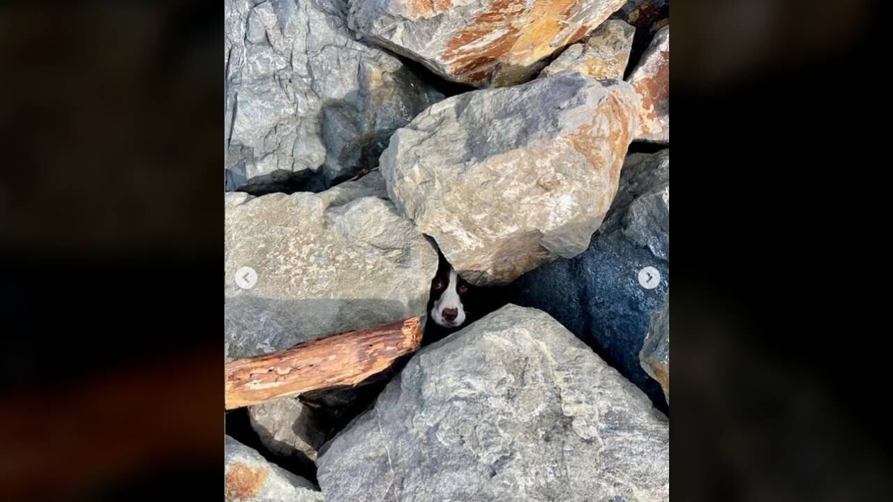 The rescue center said a jogger, identified by Runner’s World as Brian Glover, was running on the beach on Jan. 16 and heard a “muffled bark.” When he looked, he didn’t see a dog or person in sight. Instead of just ignoring the noise, Glover decided to look around and amazingly noticed a dog’s face peering out from under the rocks.