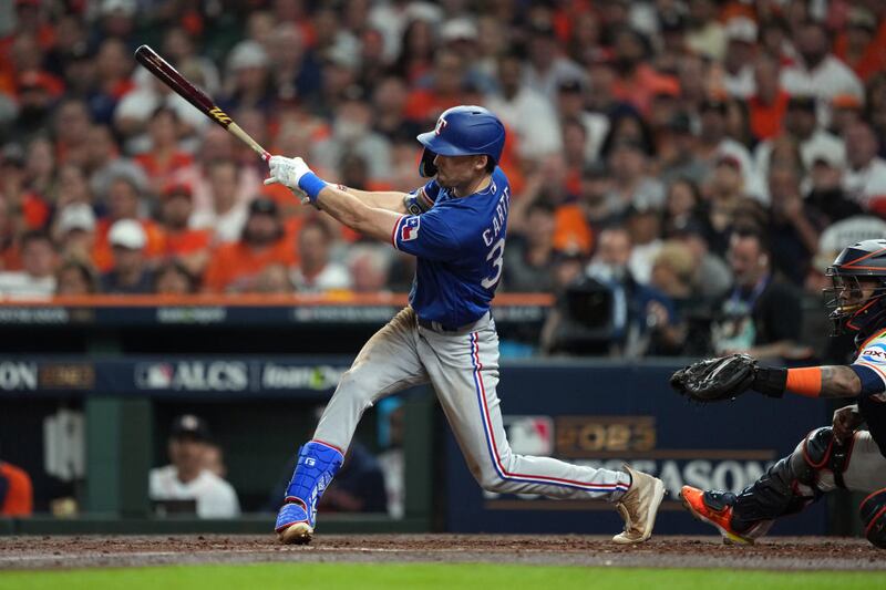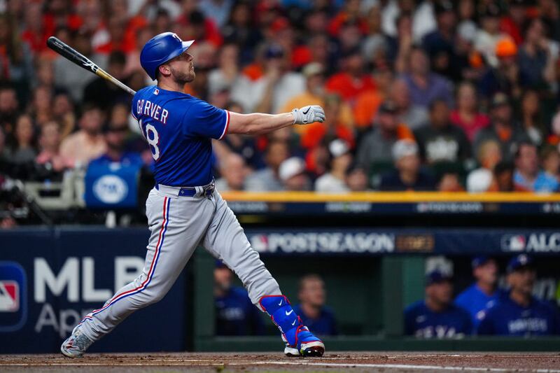 The Rangers opened fast, scoring three runs at Houston’s Minute Maid Park when Corey Seager homered. Adolis Garcia, whose grand slam clinched the Rangers’ 9-2 victory in Game 6, had an RBI single, and designated hitter Mitch Garver’s run-scoring single made it 3-0.
